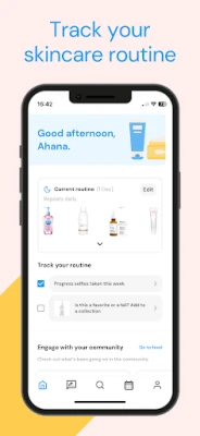- Connect with Your Tribe: Follow others on similar skincare journeys, share your reviews, questions, and updates directly to your feed, and build a community that understands your skincare aspirations.