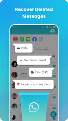 •WhatsApp Messages Recovery. With Recover Everything, you can recover messages deleted by the sender, own deleted messages, and lost WhatsApp chats on your phone. This way, you can recollect important chats, videos, audio, and photos.